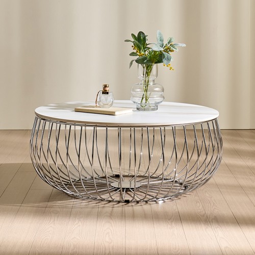 - 올슨 800 원형 포세린 세라믹 좌탁&소파 테이블(실버 프레임)