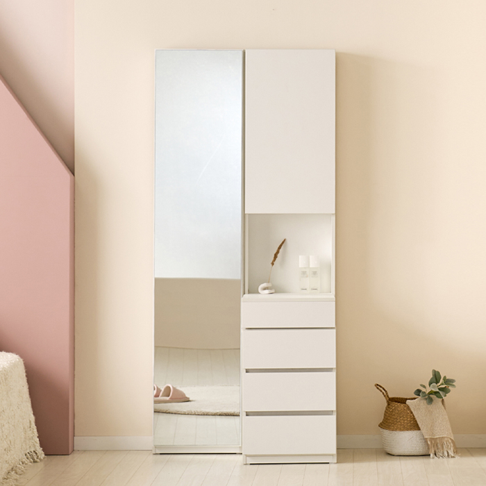 포레나 전신거울 수납 서랍형 올인원 화장대-크림화이트