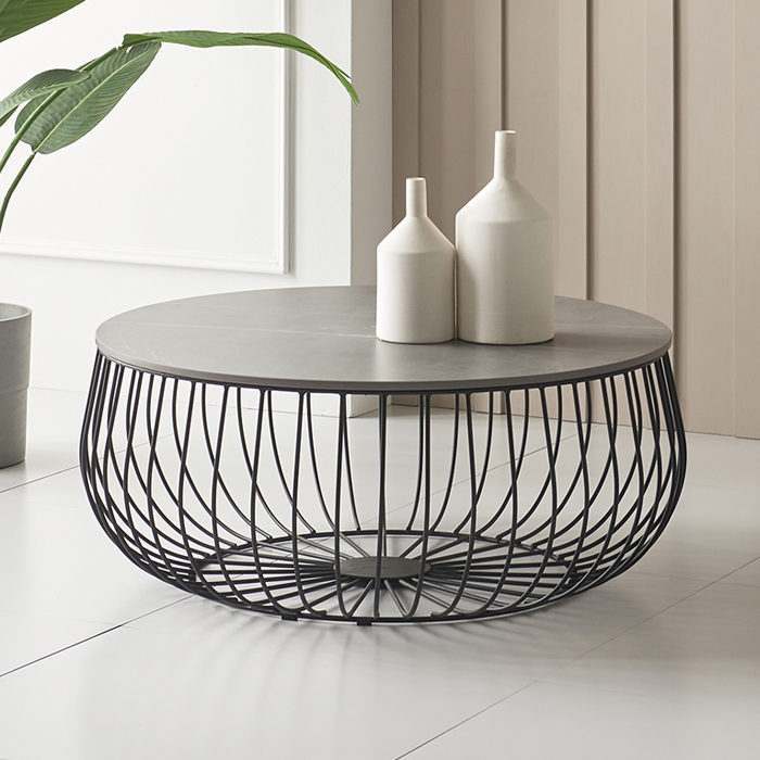 올슨 800원형 포세린 세라믹 좌탁&소파 테이블(블랙 프레임)