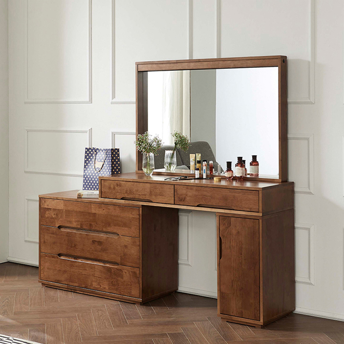 프라모 고무나무 원목 확장형 화장대 세트-월넛