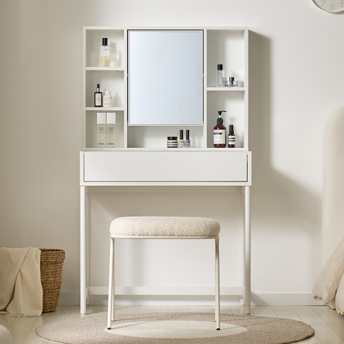 - 포레나 콘솔 입식 유리선반 수납형 화장대-크림화이트