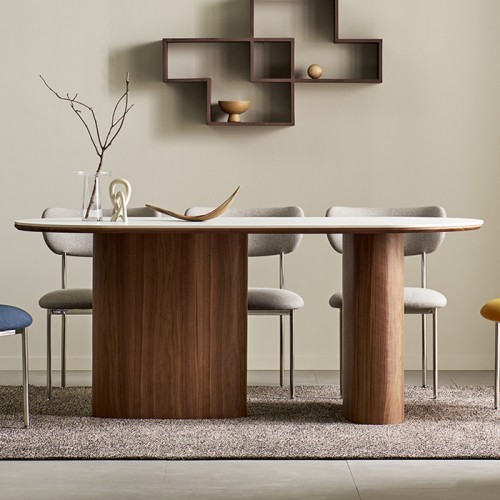 - 에번 세라믹 1800 타원형 6인 테이블-마일드월넛(의자옵션)