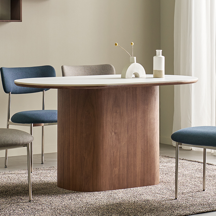 에번 세라믹 1400 타원형 4인 테이블-마일드월넛(의자옵션)