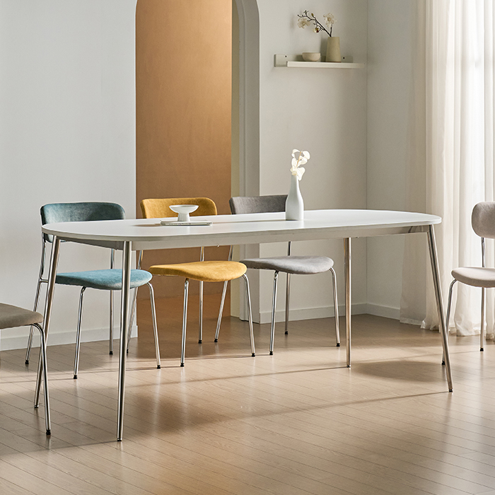 > 엘븐 1800 타원형 6인 식탁 테이블-실버 프레임(의자옵션)