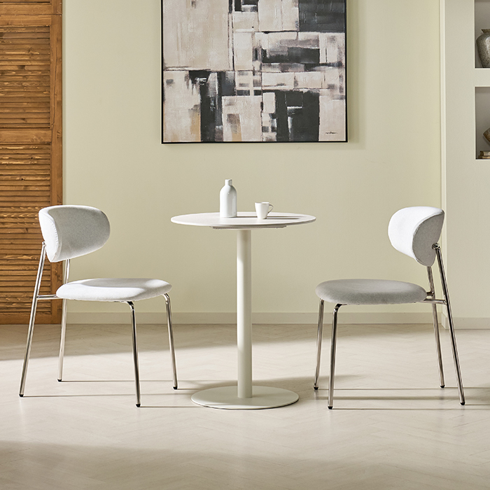 > 마브 세라믹 600 원형 테이블+벨라 패브릭 의자 세트