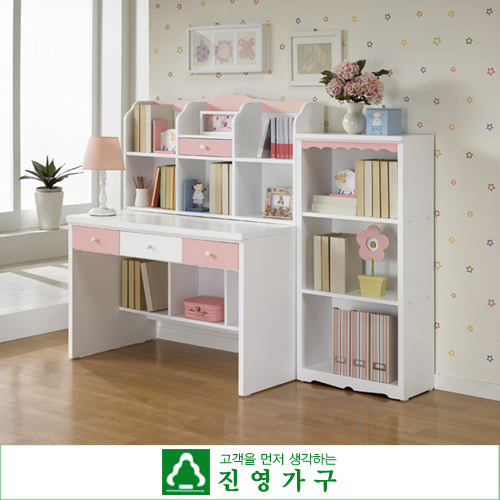스프리머시 1200편수책상,600책장 세트-핑크